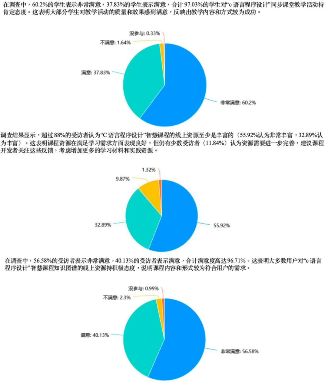 项目落地以来,成效显著。在高校协作层面,各院校通过交流分享,建立紧密合作关系,逐步形成疆内高校教育共同体,为跨领域合作奠定基础;教师能力方面,通过经验学习与实践,教师对AI教学应用、教改申报的认知深化,教学理念与方法迭代升级,课堂质量显著提升;教学模式上,AI课程提供个性化学习体验,同步课堂实现资源共享,创新“线上+线下”“AI+教师”混合式教学形态,为其他课程改革提供示范。员工反馈更印证项目价值:304份有效问卷显示,97.03%员工对同步课堂满意,96.71%认可智慧课程线上资源;超88%员工认为线上资源丰富,80.59%青睐知识点学习功能,58.55%表示能通过课程有效掌握知识点关联,54.93%认为课程助力攻克学习弱点。同时,员工也表达了对多样化教学形式的期待,71.71%倾向教师讲授,69.08%喜欢小组讨论,39.47%希望增加校际任务PK环节。