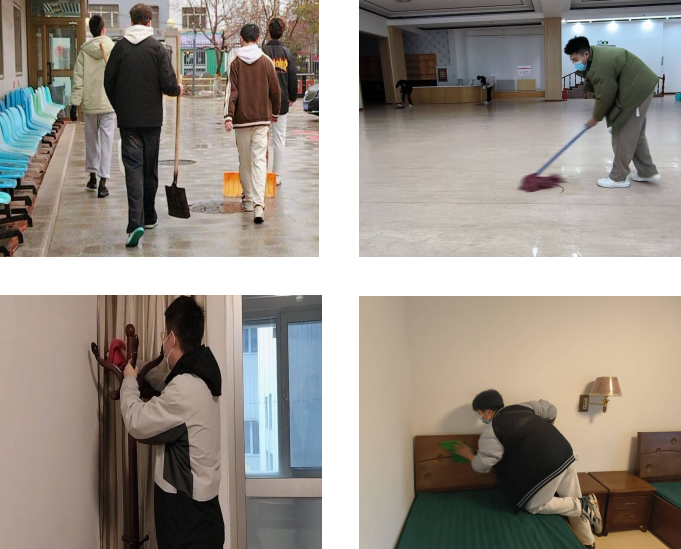 2024年3月23日上午11时,22-16班和22-13班的志愿者们在养老院门口集合,每个人的脸上洋溢着热情的笑容,在养老院开展志愿服务活动。在欢快的氛围中,志愿服务活动顺利开展。首先,由志愿者们对老人们生活环境进行打扫,扫雪小组对老人们生活的院子进行打扫,铲平积雪。