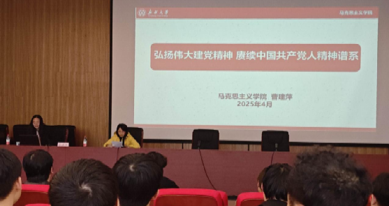 首先,曹建萍老师以习近平总书记“七一”重要讲话为引,指出这是一篇闪耀着马克思主义光辉的纲领性文献,讲话紧紧围绕实现中华民族伟大复兴这个主题,是坚定信仰信念信心的最好教科书,是我们党以史为鉴、开创未来的政治宣言书,也是激励全党全国各族人民奋进新时代、走好新征程的强大动员令,旨在告诉各位要高扬伟大建党精神,以史为鉴,开创未来,向第二个百年奋斗目标前进。