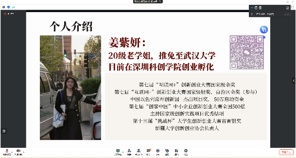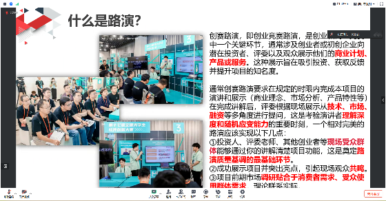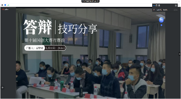本次活动邀请姜紫妍、陈秋君和莫景荐三位同学,分享他们在往届省赛乃至国赛的PPT制作、答辩技巧及项目展示等方面经验,帮助参赛队伍进一步提升项目质量、优化展示方式。