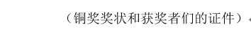 (铜奖奖状旁放置着获奖选手们的证件)
