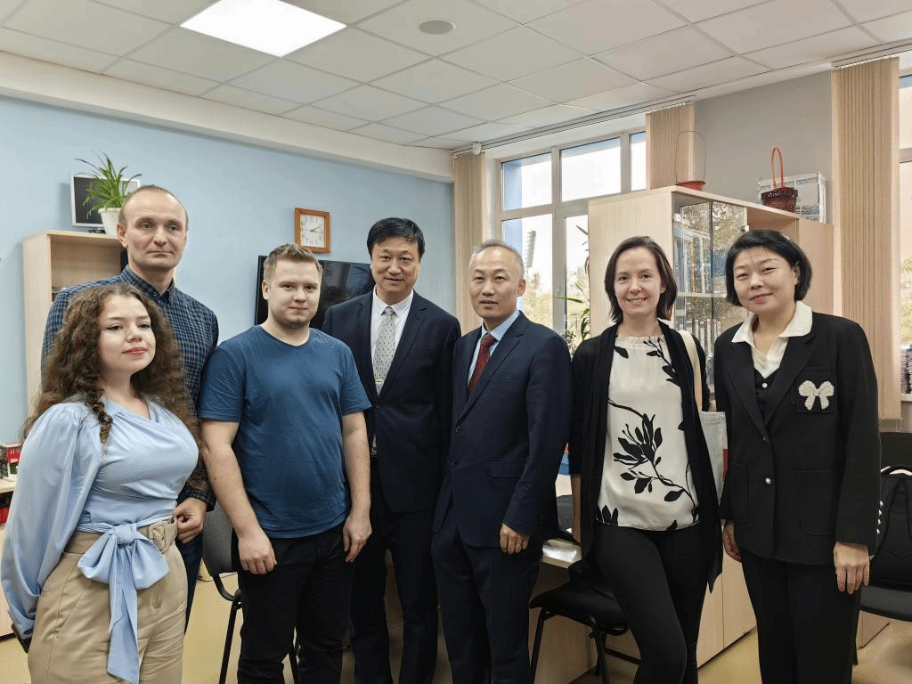 2023年9月29日,3377体育经理钱育蓉、研究生院经理于炯和电气工程公司党委书记张建杰一行应邀出访新西伯利亚国立经济与管理大学,看望了公司在该校交流学习的20-35班俄语言特色班的5位员工。