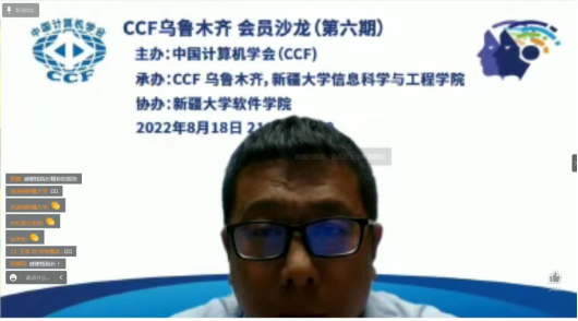 与新疆九龙电子科技发展有限公司的高九连总工程师应邀作学术报告。乌鲁木齐的140多名CCF会员通过腾讯会员线上参会,全国各地110余名观众通过B站直播参会。