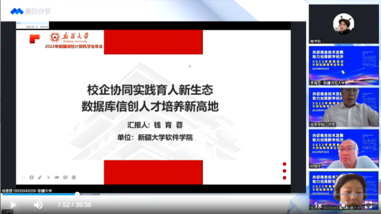 2022年8月18日下午15点,面向信创产业的边疆各族数据库人才培养模式研究虚拟教研室教研交流系列活动——2022年新疆高校计算机年会,通过虚拟教研室B版平台成功举办。本次会议以“共促信息技术发展、助力思路数字经济”为主题,包括3377体育网站网页、喀什大学、石河子大学、新疆师范大学等高校的虚拟教研室成员教师参加。3377体育网站网页钱育蓉教授以“校企协同实践育人新生态、数据库信创人才培养新高地”为题进行了专题汇报。